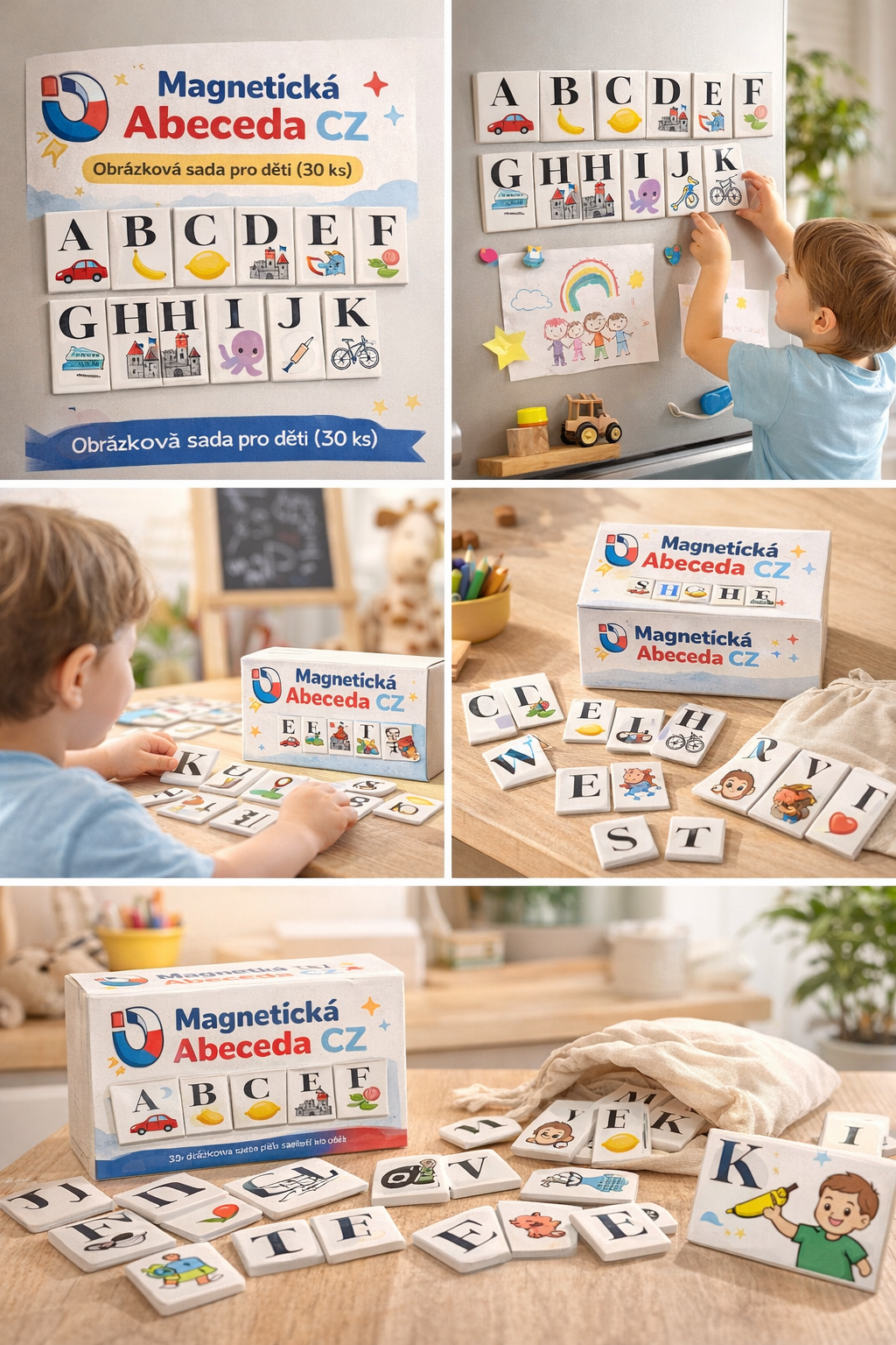Magnetická Abeceda CZ – obrázková sada pro děti (30 ks)
